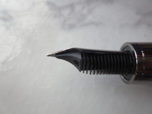 機構は吸入式です。ミキシングテーブルのつまみのような尻軸を回してインクを吸入します。この動作、たまりませんね。