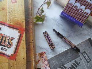 ビートルズらしいサイケデリックなパッケージに入っているのは、50mlのサイケデリックパープルという色。世界を変えた偉大な4人を讃えるインクです。