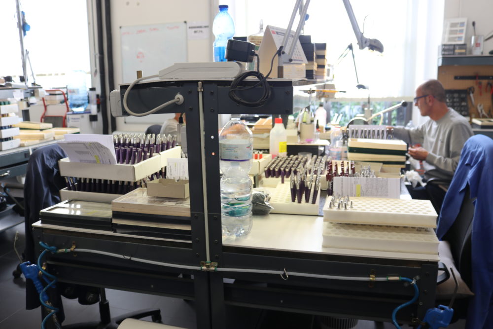 勝手なイメージで、イタリアの職人さんはワイワイガヤガヤ作業をしてるのかなと思っていましたが、かなり静かに作業されていました。音楽もなく、黙々と。