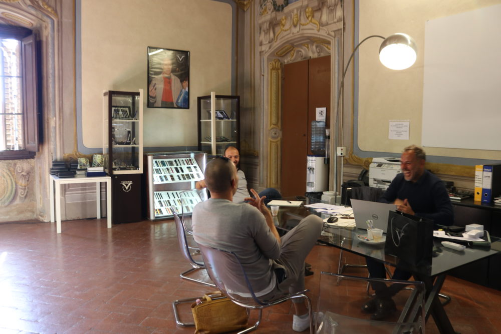 そんな貴族の城だったところをVisconti社がリノベーションしています。コの字型の典型的なお屋敷の1階をリノベーションして、オフィスと工場に変えていました。