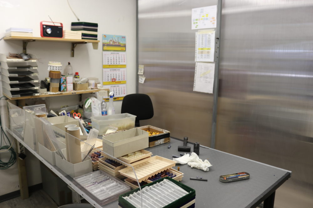 こちらではディヴィーナの組み立てを行っている方、ホモサピエンスを組み立てている方、ペン先をチェックしている方…などいろいろな作業を1部屋で行っているようでした。