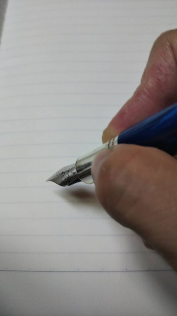 自分は首軸のネジの部分に指を当てて、ネジを滑り止めとしてペンを握ります。