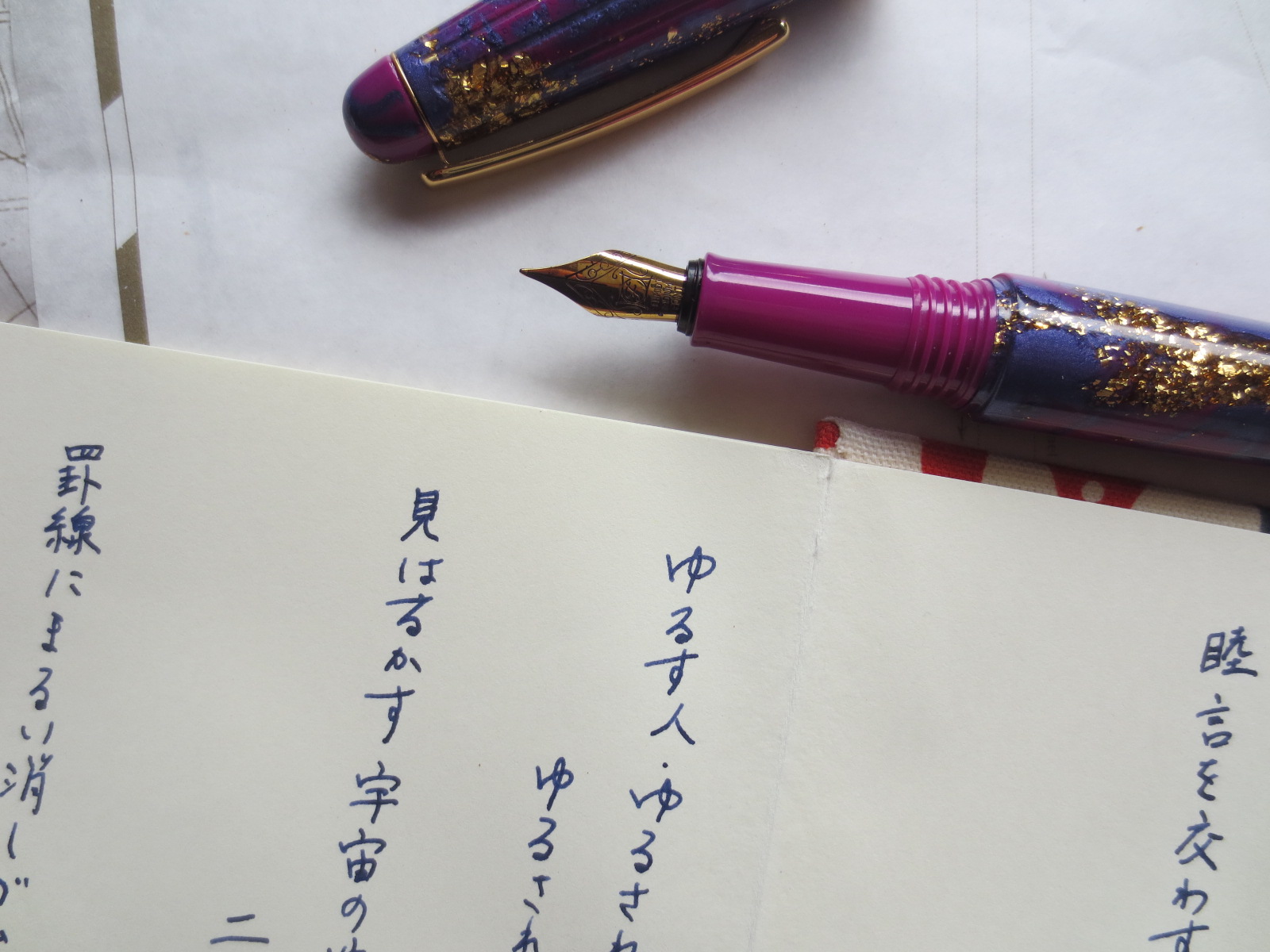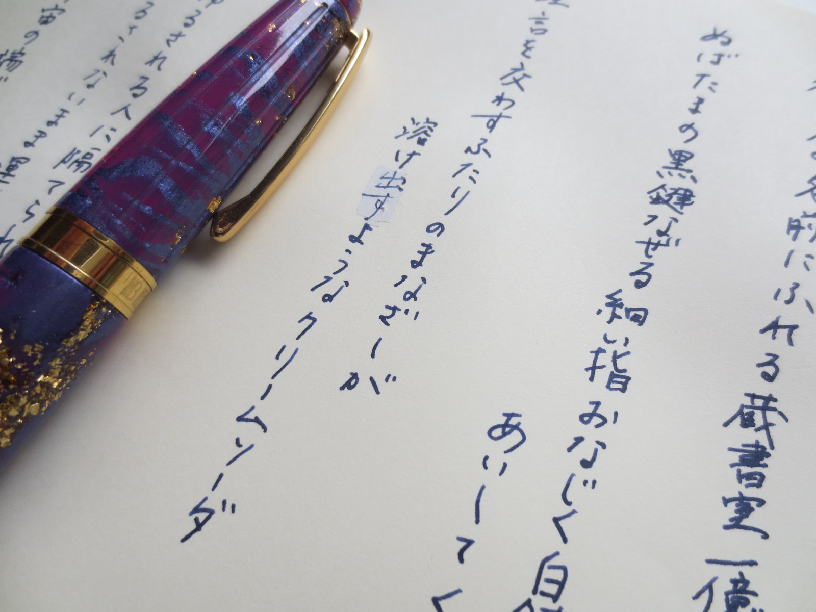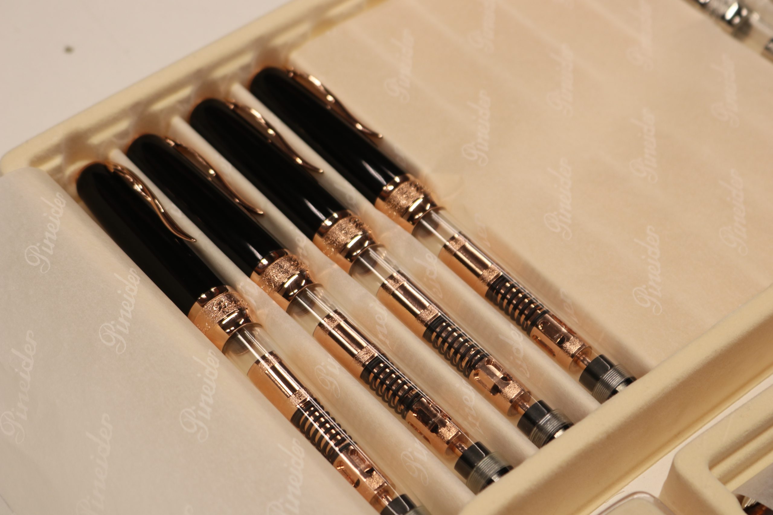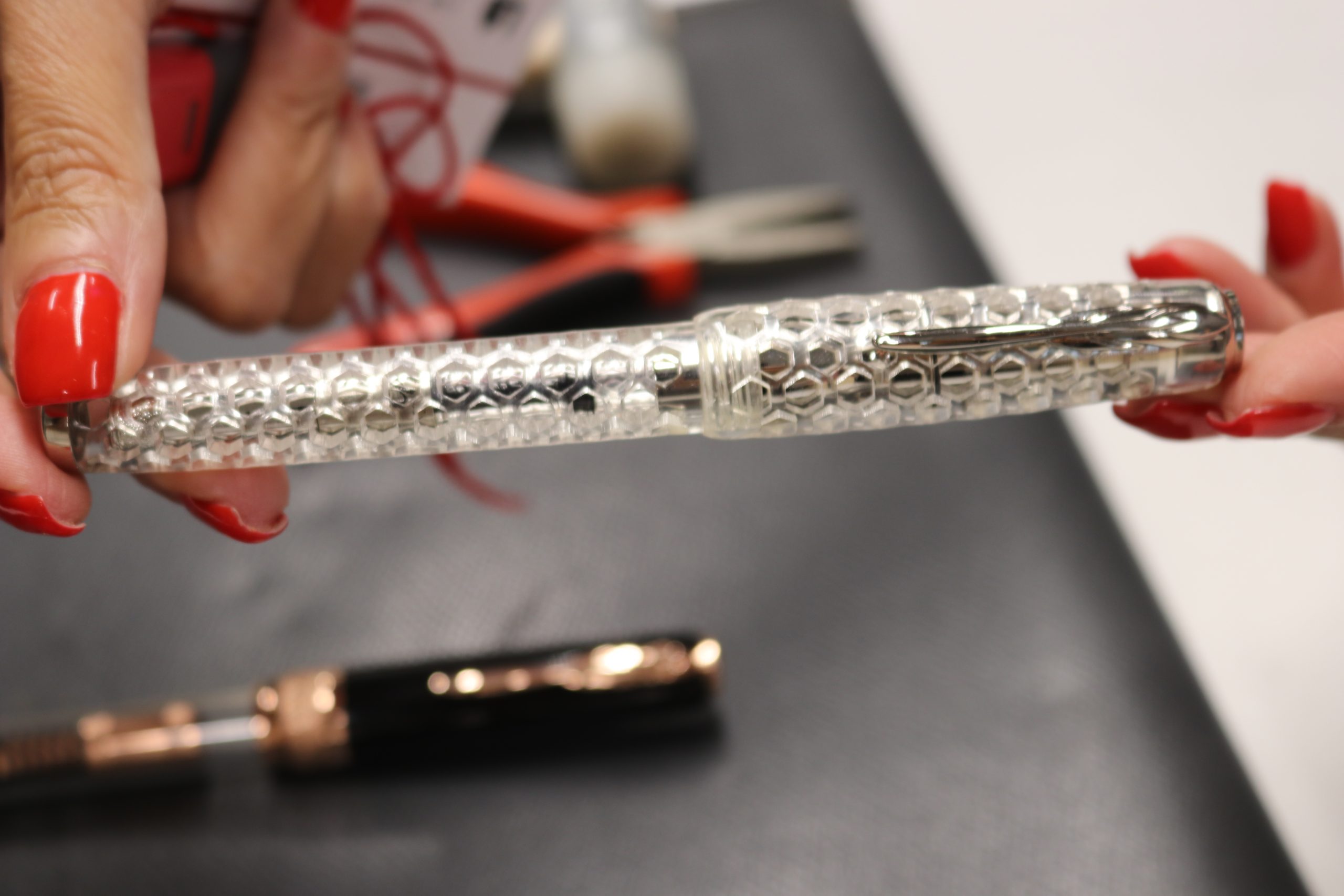 女性向けのライン。ディヴィーナ独自の螺旋部分の金色が、ネイルみたいに本当にキラキラしていて綺麗でした!女性向けでこんなに迫力あるペンはなかなかありません!
