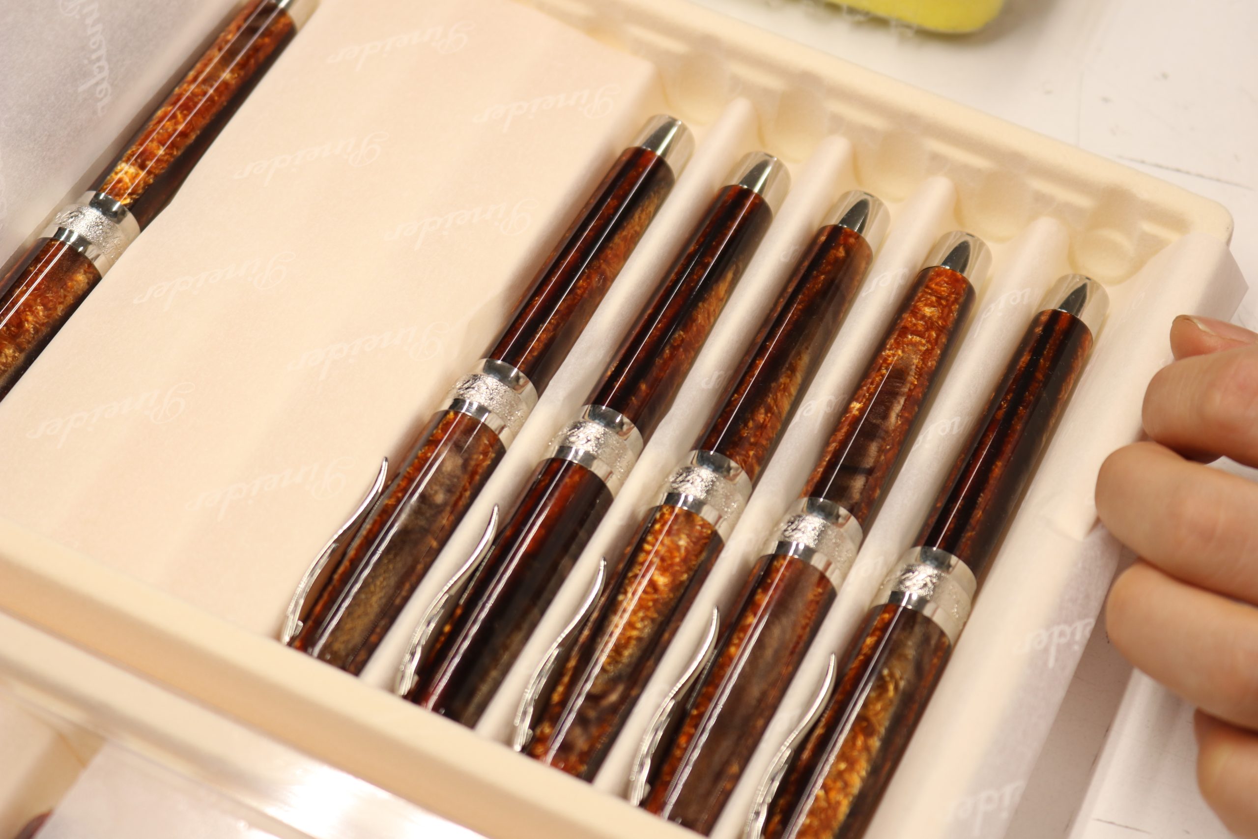 私「あと、ホモサピエンスやミリオネアシリーズのような、面白い素材を使ったペンは他のブランドにはなくて、とても好きです。石の肌触りは心地いいですし。こういうのもっと作っていただけると嬉しいです。」