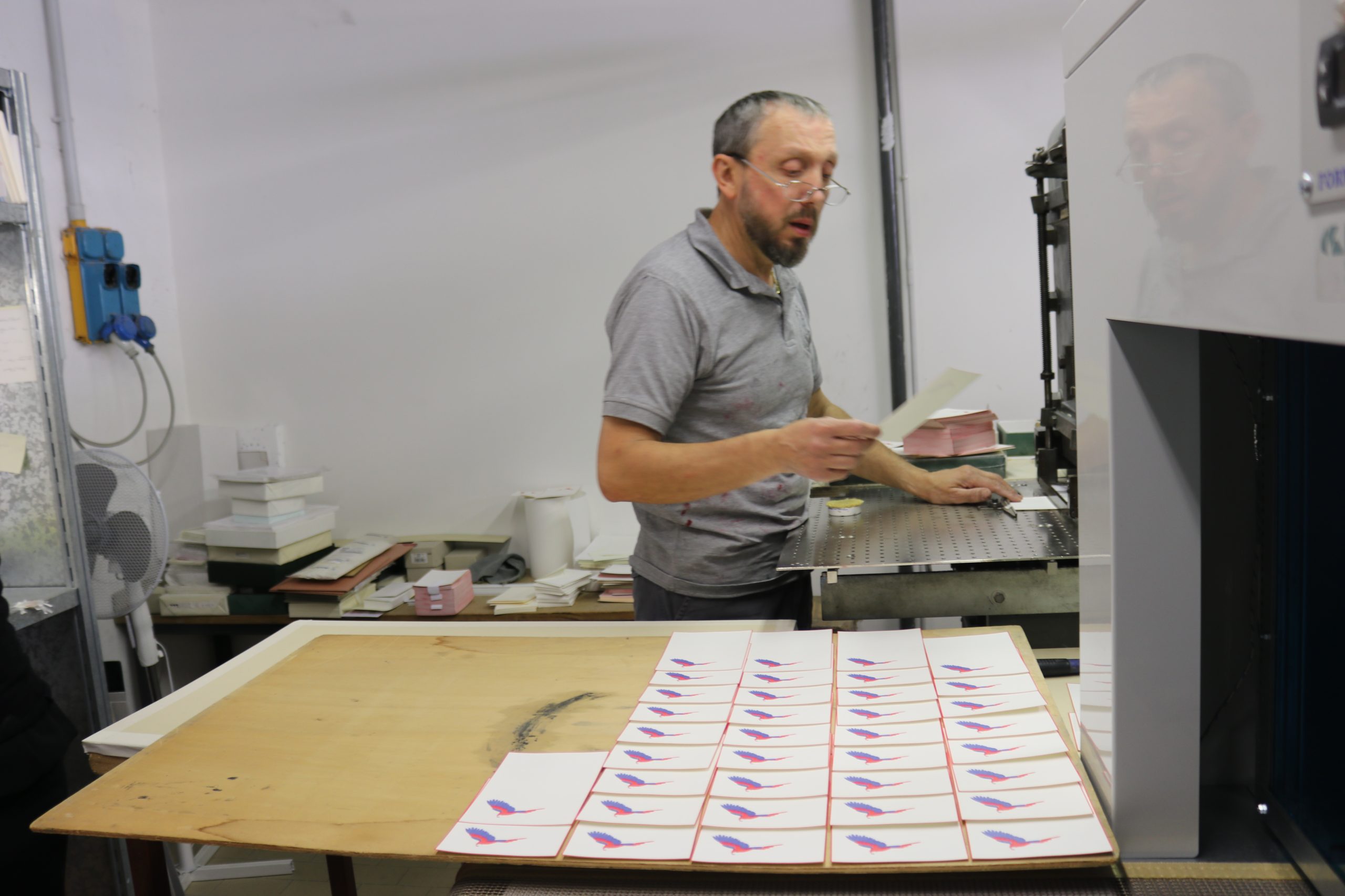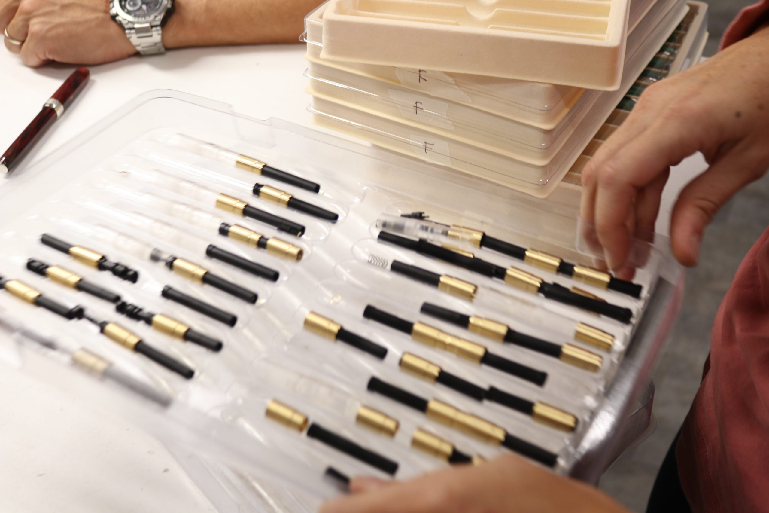 こちらではディヴィーナの組み立てを行っている方、ホモサピエンスを組み立てている方、ペン先をチェックしている方…などいろいろな作業を1部屋で行っているようでした。