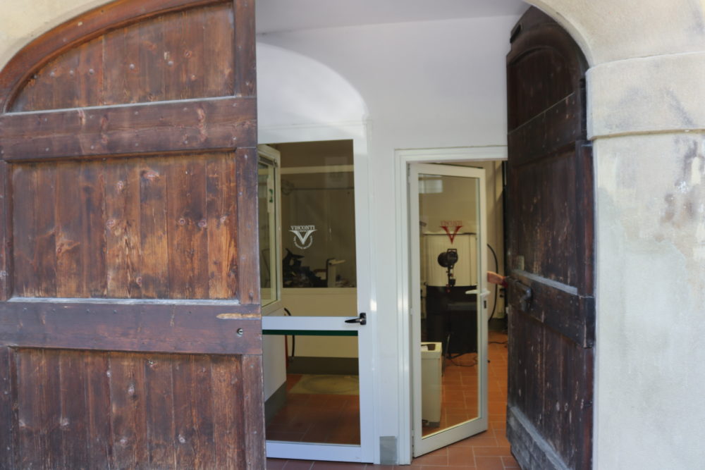 そんな貴族の城だったところをVisconti社がリノベーションしています。コの字型の典型的なお屋敷の1階をリノベーションして、オフィスと工場に変えていました。